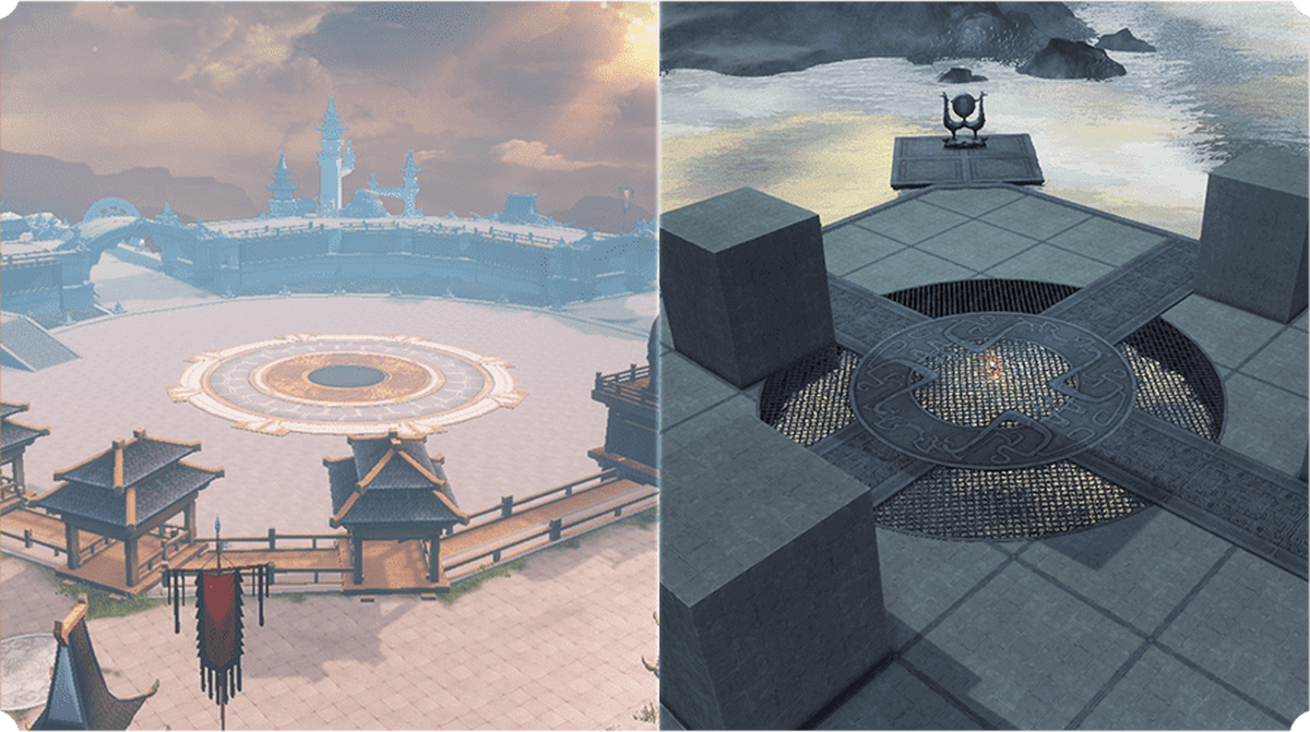游戏采用独特的山海国风美术风格,呈现古代山川、遗迹等场景,带来浓厚的东方古典魅力。