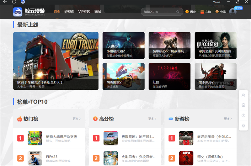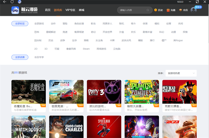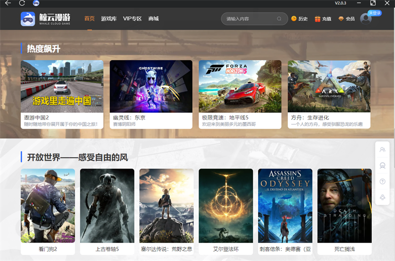鲸云漫游是一款非常好用的云电脑平台软件,鲸云漫游电脑版之中用户可以在软件之中游玩各种3D大作游戏,在这里你的电脑支持不了的游戏,使用该软件就可以直接进行游玩,并且游玩运行画质高清完全不会卡顿。