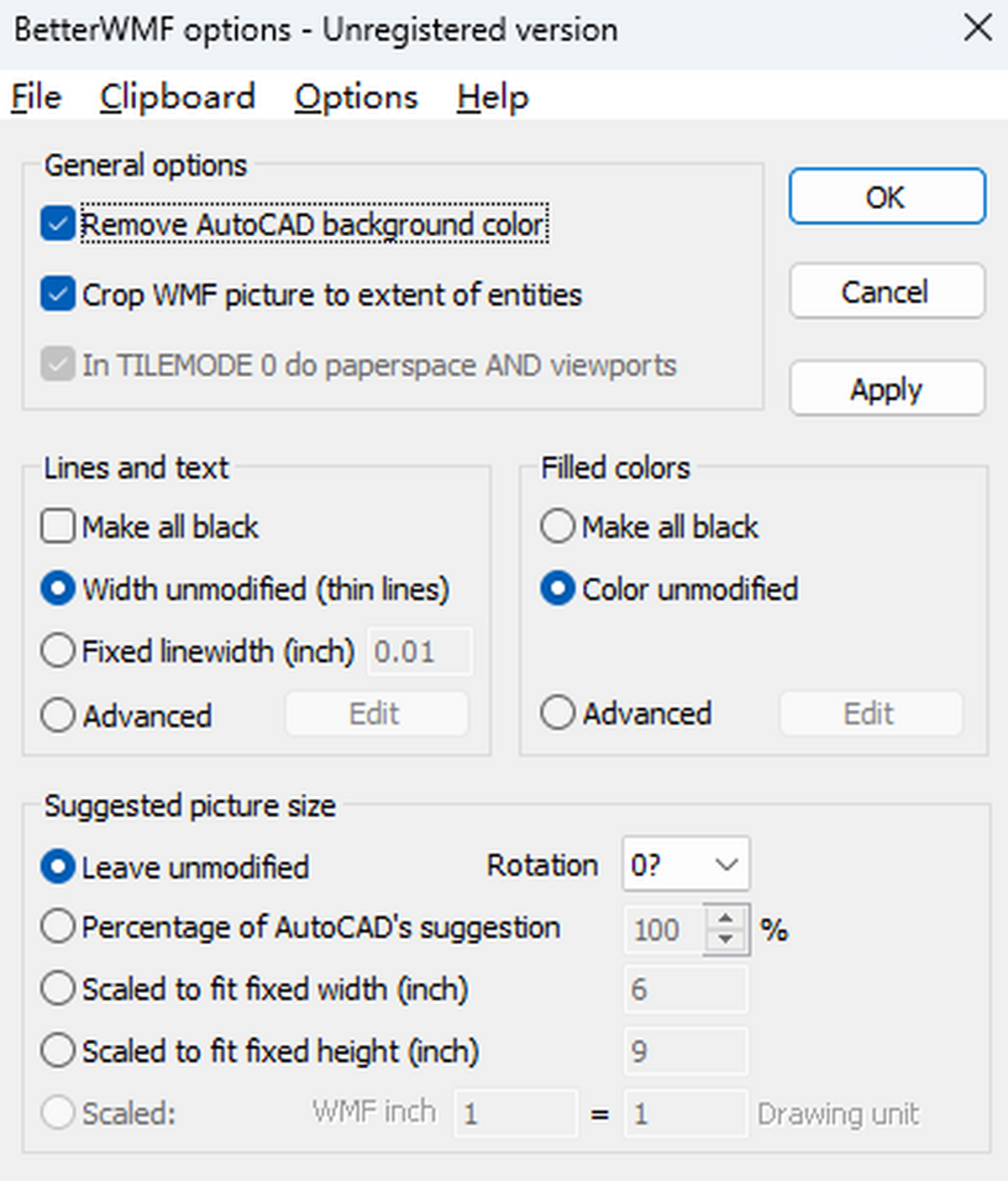 BetterWMF是一款非常好用的图像软件,BetterWMF电脑版之中用户可以直接将DWG格式的图形直接粘贴到 Word 中,并且可以自动转码成 WMF 格式文件,在转码的过程之中可以自动去除黑色背景,让整个图片透明化,提升用户的观看体验。