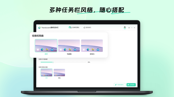 支持完全透明、高级模糊和亚克力效果等多种风格,能让任务栏与桌面壁纸完美融合,使桌面看起来更加简洁美观,满足不同用户的审美需求。