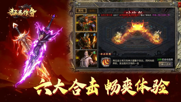 合击技能威力强劲、特效炫酷,不同职业与英雄组合能打出多样化战斗效果,策略性与爽感兼具。
