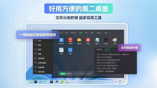 分区可收起为小图标,随用随启,既能节省桌面空间也能保护隐私,双击桌面空白处还能隐藏全部图标,进一步保障隐私安全。