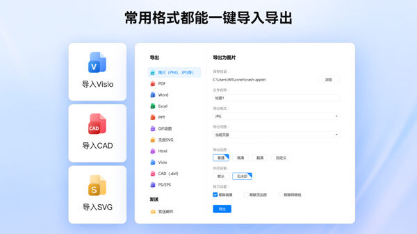 万兴图示电脑版是一款功能强大的图示和可视化工具,万兴图示2026最新版轻松创建各种类型的图形、图表和示意图,提供大量预设模板和符号,方便用户可以快速创建符合需求的图示,支持在线协作,团队成员可以实时编辑和评论图示,便于信息的共享和沟通。