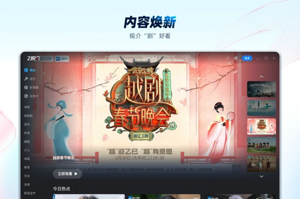 Z视介电脑版是一款专为用户提供高质量视听内容的客户端,Z视介2026最新版汇聚了丰富的视听资源,多个频道栏目内容供用户在线收藏观看,提供高清画质播放,为用户提供清晰流畅的视听体验,无论是观看细腻的影视剧还是生动的纪录片,均能享受到极佳的画面效果。