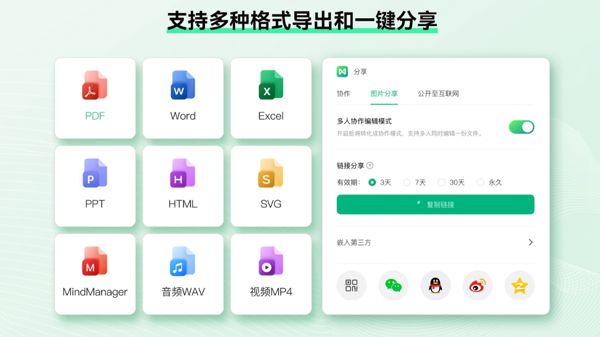 万兴脑图软件提供层次分明的节点结构,帮助用户有效整理思路和信息,支持添加连结、任务和备注,增强导图的功能性和实用性。
