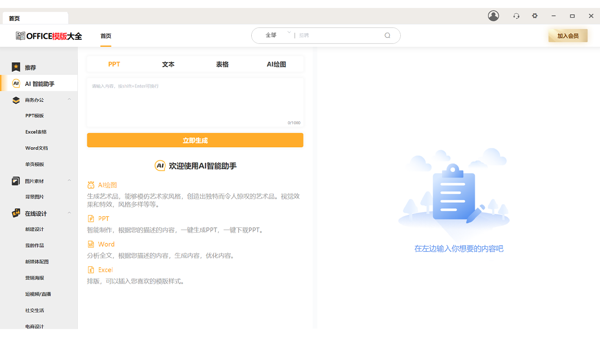 Office模板助手大全电脑版是一款专为办公用户设计的应用软件,Office模板助手大全2026最新版内置了数千种各类Office模板,涵盖了商务、教育、个人等多个领域,内置AI文档处理,一键操作就能对文档进行智能优化,同时还有文档评分系统,会评估文档质量并给出改进建议,帮助用户打磨出更专业的文档。