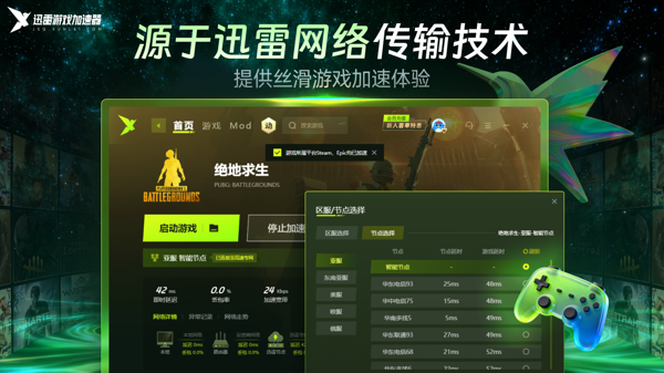 迅雷加速器电脑版是一款由迅雷推出的专门针对网络游戏的加速软件,迅雷加速器2026最新版覆盖全球主流游戏的核心区服,基于迅雷在网络技术领域多年的研发经验,迅雷加速器采用自研的专利加速协议,显著降低游戏中的网络延迟。
