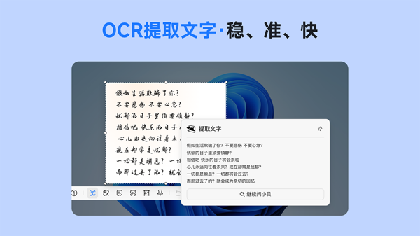 高精度 OCR 文字提取,秒级识别印刷体、手写体文字,复杂公式、矩阵也能精准提取,支持局部复制识别结果。