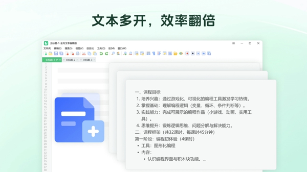 多标签页编辑模式,支持同时打开多个文件,标签间快速切换,方便对比编辑、跨文件复制内容,告别多窗口切换的繁琐。