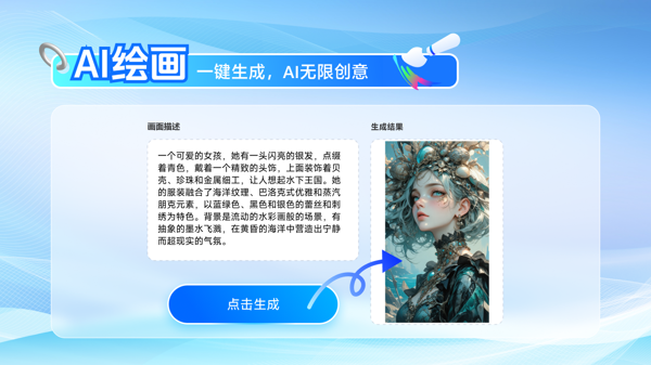 支持关键词精准生成,输入场景、风格、光影等简单描述,AI 算法就能快速生成符合预期的图片,还能自动补全专业绘画细节,适配艺术创作、电商设计等场景。