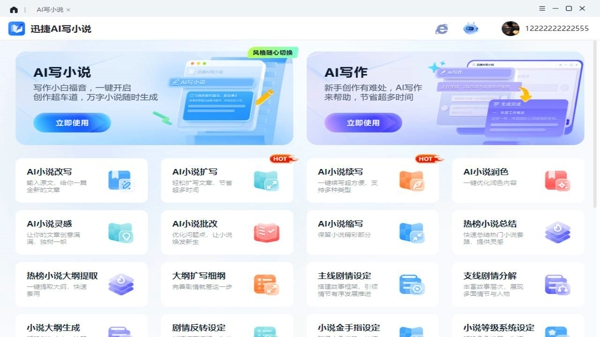 迅捷AI写小说软件是一款功能强大的智能创作助手,迅捷AI写小说2026客户端能根据指定题材自动生成完整的章节,涵盖玄幻、言情、科幻等20多种题材,提供实用的小说扩写和改写功能,帮助用户充实情节或改进文稿,使故事更加丰富和吸引人。