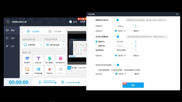 实用功能加持,内置定时录制避免错过重要内容,多源叠加可融合摄像头、文本注释、Logo 图像,适配讲师出镜 + PPT 演示等复合场景。