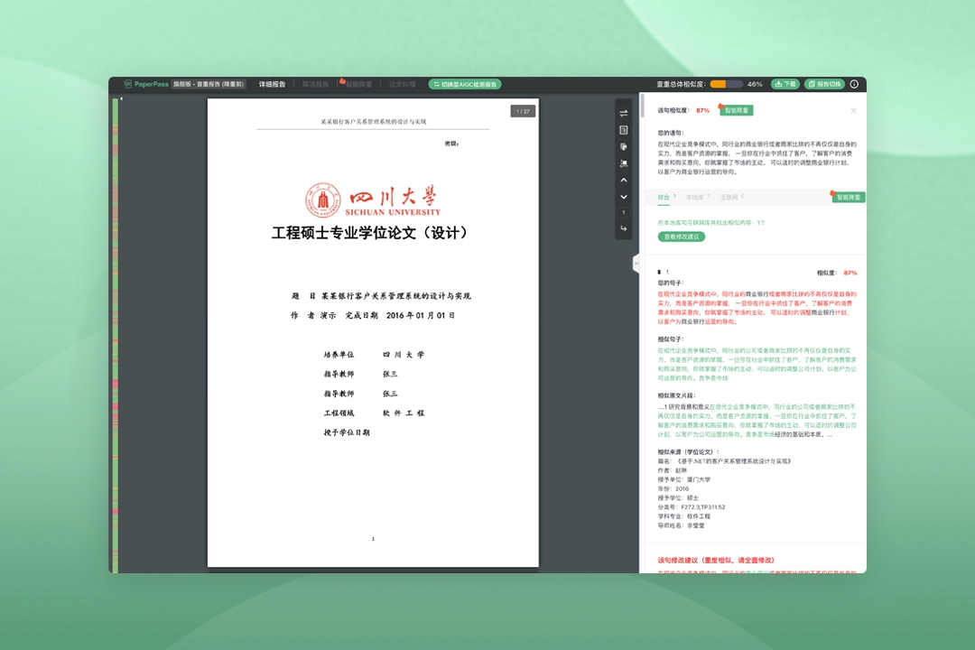 PaperPass论文查重软件是一款高效便捷的论文查重检测应用,PaperPass论文查重电脑版2026客户端提供全面、科学的文献原创性检测,帮助用户识别和避免抄袭风险,可以对文本进行越级扫描,通过比对数据库中的海量文献,快速识别重复内容和相似度,能够精确的查重结果。