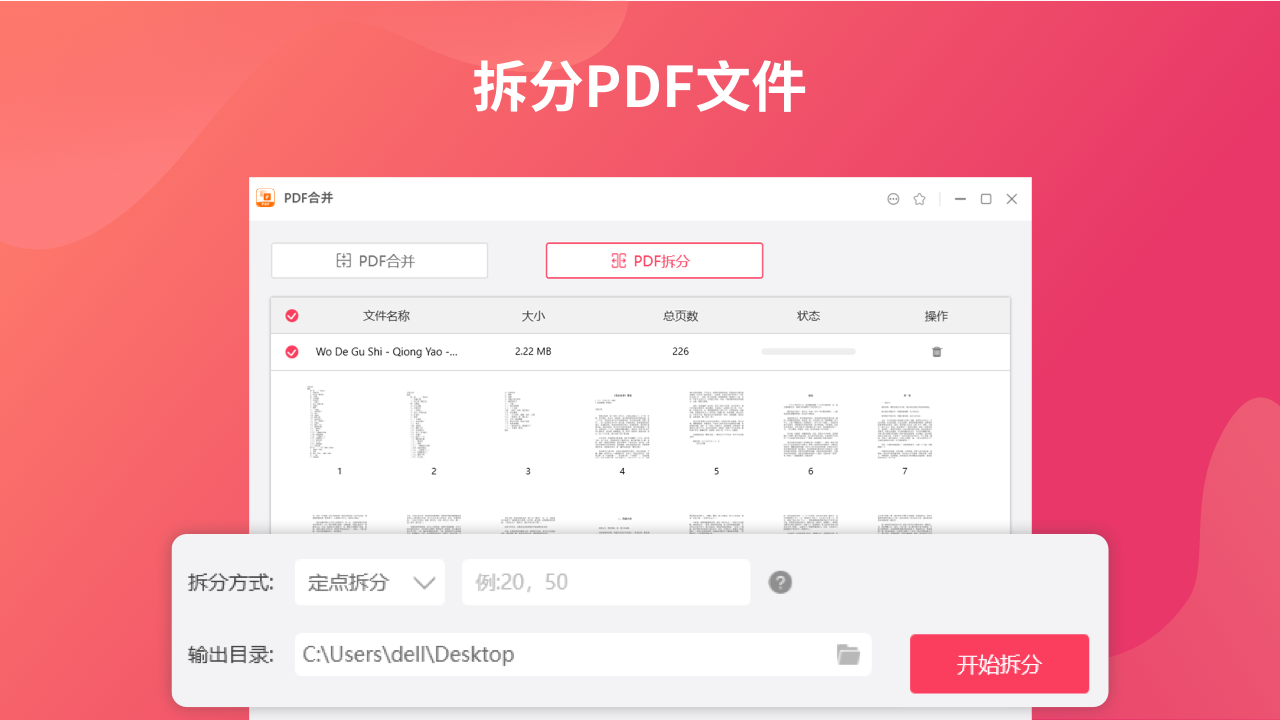 支持多种拆分方式,可按页码范围、固定页数等提取特定页面,生成独立新文档,适配合同提取、章节拆分、打印优化等场景。