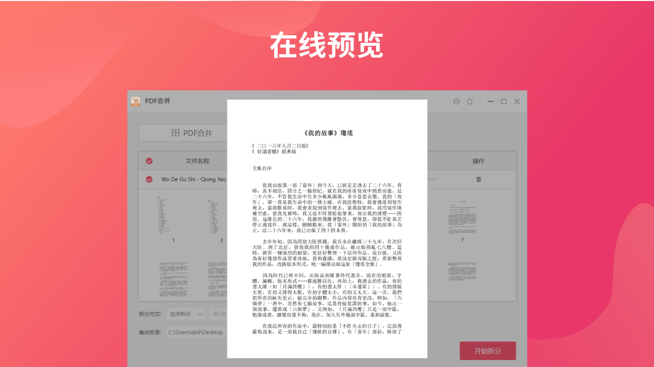 内置页面预览功能,拆分前可单独查看每页内容,精准定位目标页面,避免提取错误,保障文档完整性。