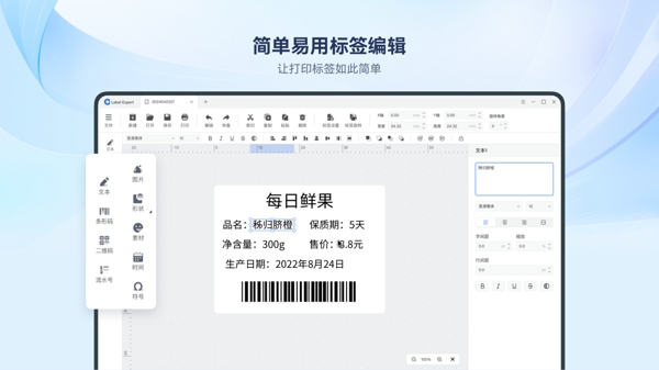 支持多语言字体、商用图标素材调用,可自由调整标签尺寸、颜色、排版对齐方式,还能添加水印、旋转裁剪,个性化创作不受限。
