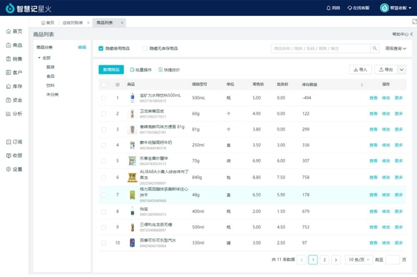 金蝶星火进销存软件支持商品多规格、多单位管理,可按颜色、尺码、型号分类,还能通过组装拆分生成商品套餐,同时支持一键盘点,出入库数据自动记录,库存明细清晰可查。