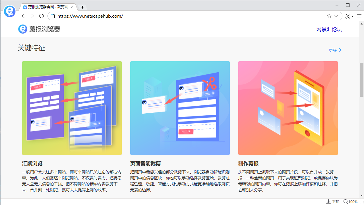 剪报浏览器电脑版是一款简便高效的浏览器,剪报浏览器2026最新版支持将不同网站的核心内容裁剪提取,统一合并至单个标签页展示,无需逐个访问网站,告别多标签切换的繁琐,聚合页面仅需一次刷新操作,即可同步获取所有裁剪内容的最新信息,热点资讯、关注内容实时掌握。