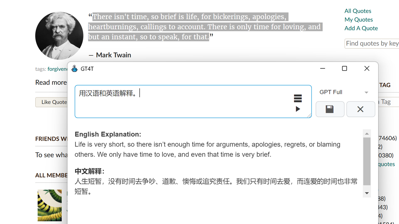 GT4T电脑版是一款跨平台的自动翻译软件,GT4T最新版2026客户端可以在用户的任何窗口中,获取所选文本并提供即时翻译建议,让用户在处理文本时无需切换应用程序,能够批量翻译多种文档格式,界面简洁直观,用户可以轻松上手,快速找到所需功能。