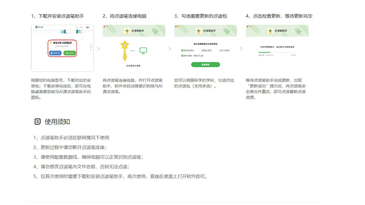资源更新过程稳定流畅,支持断点续传,更新中提示进度,完成后自动提示安全移除设备,避免数据丢失,确保绘本、单词卡、动画音频等资源完整可用。