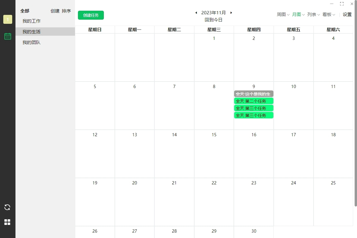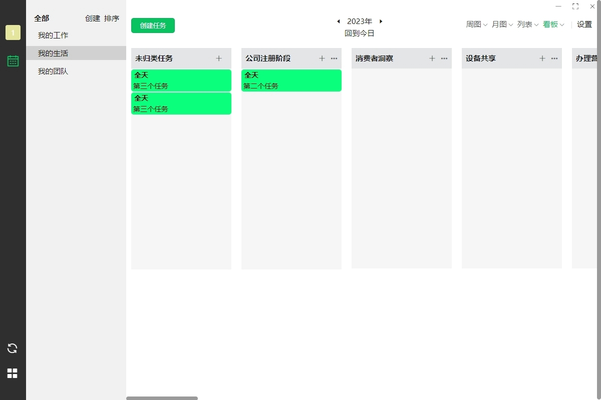 提供周视图、月视图、看板视图三种显示模式,适配不同使用习惯:周 / 月视图便于宏观规划日程,看板视图可按优先级、任务阶段梳理进度,类似 Teambition 的管理机制,清晰把控任务推进节奏。